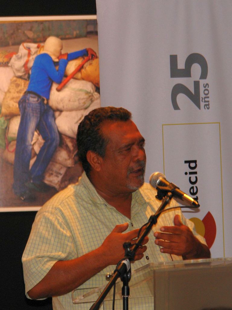 Raúl Mijango at a debate about the gang truce in March 2013. In March 2012, a truce between El Salvador’s two major gangs was initiated. While it helped reducing the high number of killings, the process is considered to lack transparency. The government’s role in it has never been clarified. Mijango was one of the main interlocutors, he also is an ex-FMLN combattant and served as security adviser for the Defense Ministry. The pictured event was meant to be a much needed public discussion about the truce, however, it turned out to be a presentation by public officials in one of San Salvador’s wealthiest neihbourhoods with very limited space for questions.